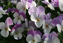 角堇:为堇菜科堇菜属多年生草本植物。株高10-30厘米 ,宽幅20-30厘米。具根状茎。茎较短而直立,分枝能力强。花两性,两侧对称,花梗腋生,花瓣5,花径 2.5-4.0厘米。花色丰富,…全部>>