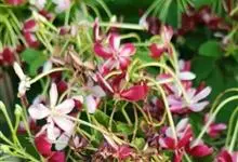 使君子 Jongkind)是使君子科、使君子属攀援灌木,叶对生,椭圆形,两面均被灰白色柔毛。穗状花序,倒挂下垂。花期夏秋。果有五棱,熟时黑色,种子白色。分布于印度、缅甸、菲律宾和中国。喜温润,深根性,…全部>>