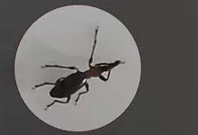 甘薯小象甲是鞘翅目蚁象科甘薯小象甲属昆虫,又称甘薯蚁象、甘薯象、番薯臭虫。成虫除触角、前胸、中胸、足为赤褐色外,鞘翅、腹部为暗蓝色,有金属光泽;体型细长,…全部>>