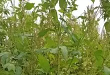 三裂叶豚草:一年生粗壮草本植物,高50-120厘米,有时可达170厘米,有分枝。叶对生,有时互生,具叶柄,下部叶3-5裂,上部叶3裂或有时不裂,上面深绿色,背面灰绿色,两面被短糙伏毛。…全部>>