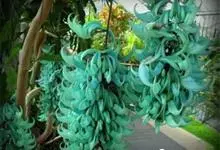 翡翠葛是豆科翡翠葛属植物,多年生常绿大型藤本,茎木质,直径可达30厘米,长可达21.3米。三出复叶,革质光亮,小叶长椭圆形,长7.6-12.7厘米,中间小叶最长。花两性,春季至初夏开花,蓝绿色,…全部>>