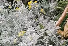 银叶菊,是菊科疆千里光属多年生草本植物。银叶菊的茎灰白色,植株多分枝;叶回羽状裂,正反面均被银白色柔毛;头状花序集成伞房花序,舌状花小,金黄色,管状花褐黄色;花期为6-9月。银叶菊原产于地中海沿岸地区,…全部>>