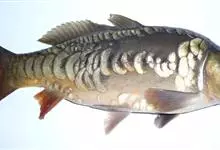 镜鲤是鲤形目鲤科鲤属鱼类。体形较粗壮,侧扁,头后背部隆起;头较小,眼较大;有颌须2对;鳃耙短小,呈三角形适中排列;尾鳍叉形;体表鳞片较大,沿边缘排列,背鳍前端至头部有一行完整的鳞片,…全部>>