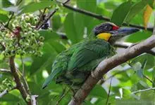 金喉拟啄木鸟,是须鴷科、拟啄木鸟属的鸟类。金喉拟啄木鸟为小型鸟类,体长19-24厘米。额深红色,头顶金黄色,后枕具一大块深红色斑,耳羽和头侧银灰色,上体草绿色,颏和上喉金黄色,下喉淡银灰色,…全部>>