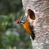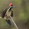 三趾啄木鸟,是啄木鸟科、啄木鸟属的小型鸟类,体长20-23厘米,雄鸟头顶金黄色,雌鸟黑色而具白色斑点。眼至耳覆羽黑色,眼后有一条白色纵纹,颊纹白色,颚纹黑色,甚为醒目。枕和后颈黑色,…全部>>