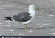 灰翅鸥,夏羽头、颈、腰、尾白色;肩、背和翅上覆羽鸽灰色。冬羽和夏羽相似,但头和颈具淡褐色纵纹,有时扩展至上胸。嘴黄色,下嘴先端具红斑;幼鸟嘴黑色。脚粉红色。栖息于海岸:悬岩,海滨沙滩于近海海岛上。常…全部>>