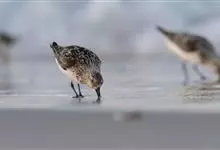 三趾鹬体长约20厘米,是一种近灰色的涉禽。肩羽明显黑色。比其他滨鹬白,飞行时翼上具白色宽纹;尾中央色暗,两侧白。特征为无后趾。夏季鸟上体赤褐色。主要栖息于北极冻原苔藓草地、海岸和湖泊沼泽地带。非繁殖…全部>>