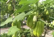 佛手瓜Swartz),又名隼人瓜、安南瓜、寿瓜等,是一种葫芦科佛手瓜属多年生宿根草质藤本植物,因其形如两掌合口有佛教祝福之意,因此多被称为佛手瓜、福寿瓜。植株具块根;叶片膜质,为心状圆形,下面有短柔毛,…全部>>