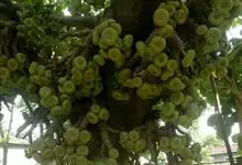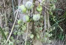 大果榕是桑科榕属的小乔木,株高可达10米;幼枝被柔毛;叶互生,宽卵状心形或近圆形;雄花无梗、匙形、花丝长,雌花生于雌株榕果内,子房白色;榕果簇生于树干基部或老茎短枝上、扁球形或陀螺形,…全部>>