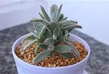 褐斑伽蓝是景天科、伽蓝菜属多年生肉质草本植物或小灌木。全株灰白色,密布白色茸毛。叶片长卵形,上半部具有齿状叶缘,叶缘处有褐色斑点;叶序对生或以近轮生的方式紧密排列。花期为春、夏季,…全部>>