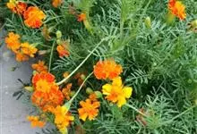 万寿菊是菊科万寿菊属一年生草本植物,别名孔雀菊、缎子花、臭菊花、西番菊、红黄草、小万寿菊、臭芙蓉、孔雀草。万寿菊茎近基部分枝。叶羽状分裂,长5-10厘米,宽4-8厘米,裂片长椭圆形或披针形,具锐齿,…全部>>
