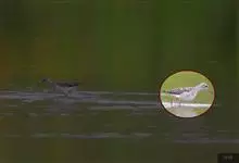 泽鹬:小型涉禽,体长19-26厘米。嘴长,相当纤细,直而尖。颜色为黑色,基部绿灰色,脚细长,暗灰绿色或黄绿色。夏季上体灰褐色具黑色斑,腰白色并向下呈楔形延伸。下体白色,颈、胸具细的黑色纵纹。…全部>>