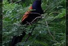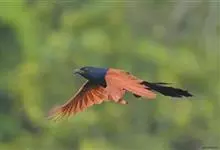 褐翅鸦鹃,是鹃形目鸦鹃科鸦鹃属的鸟类。褐翅鸦鹃的身体为黑色;头颈和胸带蓝紫色金属光泽并具黑亮的羽干纹,下胸至腹部泛金属绿光泽;两翼和肩部为棕栗色,外侧飞羽具暗色羽端,尾羽闪铜绿色光泽;虹膜赤红色,…全部>>