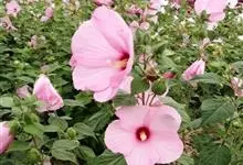 芙蓉葵是锦葵科木槿属植物,又名草芙蓉、大花秋葵,原产于北美。落叶灌木状。叶大、广卵形,叶柄、叶背密生灰色星状毛。花大,单生于叶腋,有白、粉、红、紫等色。喜阳、略耐阴,宜温暖湿润气候,忌干旱,耐水湿,…全部>>