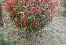 红叶石楠 是蔷薇科,石楠属杂交种,为常绿小乔木或灌木,乔木高可达5米、灌木高可达2米。叶片革质,长圆形至倒卵状、披针形,叶端渐尖,叶基楔形,叶缘有带腺的锯齿,花多而密,复伞房花序,花白色,梨果黄红色,…全部>>