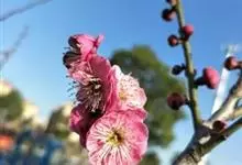 梅:蔷薇科,木本植物。形态多样,通常为小乔木,高4-10米,树皮紫红色,叶片呈弧型或椭圆形,叶边常具小锐锯齿,灰绿色。花单生或有时2朵同生于1芽内,直径2-2.5厘米,香味浓,先于叶开放;花色丰富,…全部>>