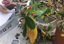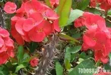 虎刺梅:别称铁海棠,是蔓生灌木植物。茎多分枝,长60-100厘米,直径5-10毫米,具纵棱,密生硬而尖的锥状刺,刺长1-1.5厘米,直径0.5-1.0 毫米,常呈3-5列排列于棱脊上,呈旋转。叶互生…全部>>