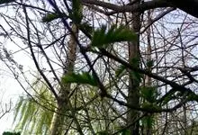 落羽杉 Rich.),杉科落羽杉属木本植物。树干尖削度大,基部通常膨大,具膝状呼吸根,树皮棕色,裂成长条片;一年生小枝褐色,侧生短枝;叶线形;球果具短柄,熟时淡褐黄色,被白粉;花期3月;球果10月成熟。…全部>>