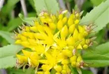 费菜 ’t Hart),又名土三七、三七景天、景天三七等,为景天科费菜属多年生草本植物。费菜根状茎短,有1-3条茎,直立。叶互生,狭披针形、椭圆状披针形至卵状倒披针形;叶坚实,近革质。聚伞花序有多花,…全部>>
