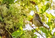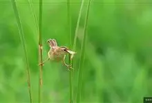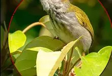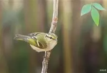 普通缝叶莺,是雀形目鹅科莺亚科缝叶莺属一种。体长10-14厘米,体重7-10克,雄鸟前额棕红,头顶至枕棕橄榄褐,上体橄榄绿染黄,飞羽及尾羽暗褐;繁殖期雄鸟的中央尾羽特形延长,下体淡皮黄白色。…全部>>