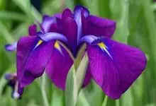 Iris sanguinea :多年生草本。根状茎粗壮,斜伸,须根绳索状,灰白色,有皱缩的横纹。叶条形,中脉不明显。花茎光滑,实心,具1-2枚茎生叶;苞片3枚,膜质,绿色,披针形,内包含有2朵花;花…全部>>