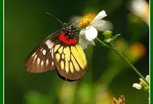 报喜斑粉蝶是粉蝶科斑粉蝶属的一种动物,又名红肩粉蝶、藤粉蝶等。幼虫群集性很强,从同一卵块孵化出的幼虫,幼龄期全部群集在一起取食,高龄幼虫常分散成小群。幼虫群集危害叶片,造成秃枝,严重者可将树吃成光杆,…全部>>