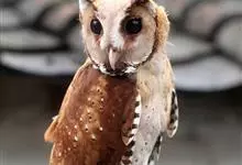 栗鸮:是鸟纲、草鸮科的猫头鹰。体长约29厘米,体重311-360克。是一种中等体型的红褐色鸮。其心形脸庞及时而竖起的“耳朵”与仓鸮甚似。上体红褐而具黑白点斑,下体皮黄偏粉具黑点,脸近粉色。虹膜深褐色,…全部>>