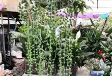 珍珠吊兰因鼓鼓、饱满翠绿的椭圆形小叶子形似珍珠状而得名。又名翡翠珠、 佛珠吊兰、翡翠珠、绿之铃,绿铃。菊科千里光属多肉植物,花期一般是当年的12月至翌年1月。珍珠吊兰性喜富含有机质的、疏松肥沃的土壤。…全部>>