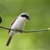 黑额伯劳是伯劳科、伯劳属中型鸟类,体长20-23厘米。外形很像灰伯劳,但个体较小,前额和宽的贯眼带斑黑色,头顶和上体灰色。翅和尾黑色具白色翅斑,外侧尾羽和下体白色,胸和两胁缀有淡蓝粉红色。 全部>>
