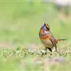 蓝点颏亦称“蓝喉歌鸲”,通称蓝靛颏儿。身体大小和麻雀相似,体长12-13厘米,体重17-18克。头部、上体主要为土褐色。眉纹白色。尾羽黑褐色,基部栗红色。颏部、喉部辉蓝色,下面有黑色横纹。下体白色。…全部>>