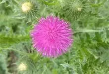 水飞蓟 Gaertn.),又名水飞雉、奶蓟、老鼠筋、乳蓟子,是菊科水飞蓟属的一种一年生或二年生草本植物。株高1.2m。茎直立有棱,多分枝,光滑或被蛛丝状毛。叶互生,莲座状基生叶常平铺地面,…全部>>