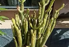 魁伟玉原产南非,是一种大戟科的多年生肉质植物,植株具粗圆筒形肉质茎,有10条以上的突出棱,表皮绿色至灰绿色,披有白粉,有较为明显、平行排列的深色横肋,刺生于棱缘上,红褐至深褐色,易脱落。小叶早脱落,…全部>>