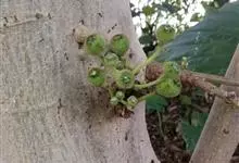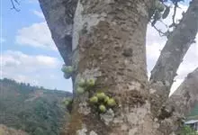 大果榕是桑科榕属的小乔木,株高可达10米;幼枝被柔毛;叶互生,宽卵状心形或近圆形;雄花无梗、匙形、花丝长,雌花生于雌株榕果内,子房白色;榕果簇生于树干基部或老茎短枝上、扁球形或陀螺形,…全部>>