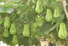 佛手瓜Swartz),又名隼人瓜、安南瓜、寿瓜等,是一种葫芦科佛手瓜属多年生宿根草质藤本植物,因其形如两掌合口有佛教祝福之意,因此多被称为佛手瓜、福寿瓜。植株具块根;叶片膜质,为心状圆形,下面有短柔毛,…全部>>