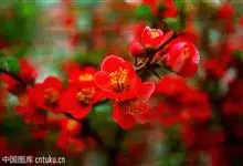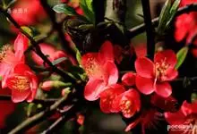贴梗海棠 Nakai)是蔷薇科、木瓜海棠属植物。落叶灌木,高达2米,枝条直立开展,有刺。叶片卵形至椭圆形,稀长椭圆形,长3-9厘米,宽1.5-5厘米。花先叶开放,3-5朵簇生于二年生老枝上。…全部>>