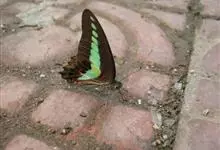 青带凤蝶Graphium sarpedon ,又名青凤蝶,是最普遍的中型凤蝶,飞行速度很快。青带凤蝶的翅膀中央有许多浅蓝色的斑点,很整齐地排列成一条直线。这些斑点由上而下逐渐变大,就像一条青色的带子。全部>>