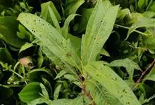 酸模叶蓼 Delarbre),是蓼科蓼属的一年生草本。株高可达90厘米;茎直立,分枝,节部膨大;叶披针形或宽披针形,先端渐尖或尖,基部楔形,上面常具黑褐色新月形斑点,…全部>>
