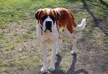 圣伯纳犬,别名巴里汉德,属于大型工作犬,肩高约65~90厘米,体重约50~90千克。圣伯纳犬身体强壮,被毛红褐色和白色相间,头圆而宽大。颈部强壮,胸宽深,背直。前肢长直,腕关节略前倾,后肢腿骨粗壮,…全部>>