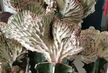麒麟掌,是大戟科大戟属多年生植物。为金刚纂的带化变异变种。麒麟掌的株乳汁丰富;它的茎圆柱状,上部多分枝,绿色;叶互生,稀少,常生于嫩枝顶端脊上,倒卵形、倒卵状长圆形或匙形,顶端钝圆,具小凸尖,全缘,…全部>>