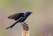 黑卷尾是雀形目卷尾科一属,又称铁练甲、铁燕子、铁林哥、羊蹄刺、榨油郎,体长约30厘米全身蓝黑色而具金属光泽,尾长且分叉较深。幼鸟似成鸟,金属光泽弱,下腹部具近白色的横纹。虹膜暗红色,嘴黑色,脚黑色。…全部>>