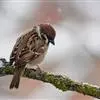 家麻雀:共有13个亚种。是小型鸟类,体长14-16厘米。背栗红色具黑色纵纹,两侧具皮黄色纵纹;颏、喉和上胸黑色,脸颊白色,其余下体白色,翅上具白色带斑。雄鸟与树麻雀的区别在顶冠及尾上覆羽灰色,耳无黑…全部>>