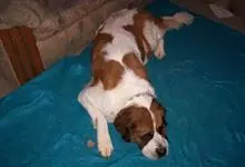 圣伯纳犬,别名巴里汉德,属于大型工作犬,肩高约65~90厘米,体重约50~90千克。圣伯纳犬身体强壮,被毛红褐色和白色相间,头圆而宽大。颈部强壮,胸宽深,背直。前肢长直,腕关节略前倾,后肢腿骨粗壮,…全部>>