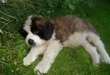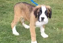 圣伯纳犬,别名巴里汉德,属于大型工作犬,肩高约65~90厘米,体重约50~90千克。圣伯纳犬身体强壮,被毛红褐色和白色相间,头圆而宽大。颈部强壮,胸宽深,背直。前肢长直,腕关节略前倾,后肢腿骨粗壮,…全部>>