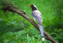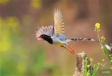 红嘴蓝鹊,别名山鹊、长尾鹊,是鸦科蓝鹊属的一种观赏性较强的大型鸣禽。该物种为体长54~65cm,头、颈、喉和胸黑色,头顶至后颈有一块白色至淡蓝白色或紫灰色块斑,其余上体紫蓝灰色或淡蓝灰褐色。尾长呈凸状,…全部>>