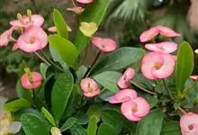 铁海棠为大戟科大戟属蔓生灌木植物;茎多分枝,具纵棱,呈旋转状;叶互生,通常集中于嫩枝上;每个花序基部边缘具微小的红色尖头;苞叶先端圆且具小尖头,无柄,上面鲜红色,下面淡红色;苞片丝状;子房光滑无毛,…全部>>