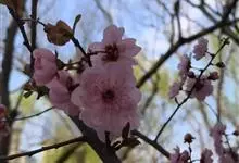 美人梅是蔷薇科李属的落叶小乔木。叶互生,呈广卵形或卵形,紫红色;花呈淡紫红色,半重瓣或重瓣,花叶同放,繁密有香味;果实呈球形,呈鲜红色;花期3-4月;果期5-6月。美人梅原产于美国,…全部>>
