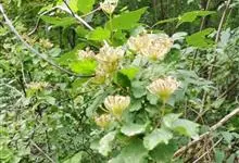 中华绣线菊:蔷薇科、绣线菊属灌木,高可达3米;小枝红褐色拱形弯曲,冬芽卵形,叶片菱状卵形至倒卵形,上面暗绿色,下面密被黄色绒毛,叶柄被短绒毛。伞形花序,苞片线形,萼筒钟状,萼片卵状披针形,花瓣近圆形…全部>>