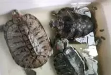 黑颈乌龟是龟鳖目淡水龟科乌龟属爬行动物;别名广东乌龟、广东草龟、黑点龟、黑颈水龟。黑颈乌龟体形较大,头较大,吻钝,略突出于上喙。头顶部黑色,侧面有黄绿色条纹;背甲黑色或棕褐色;中央有一条明显的脊棱,…全部>>