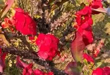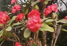 虎刺梅:别称铁海棠,是蔓生灌木植物。茎多分枝,长60-100厘米,直径5-10毫米,具纵棱,密生硬而尖的锥状刺,刺长1-1.5厘米,直径0.5-1.0 毫米,常呈3-5列排列于棱脊上,呈旋转。叶互生…全部>>