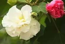 木芙蓉,锦葵科木槿属落叶灌木或小乔木。小枝上有细绒毛;叶片为卵状心形,托叶为披针形,常早落;花单生,花萼为钟形,花冠初为白色或淡红色,后逐渐变为深红色;果实为扁球形,有淡黄色的毛附着。花期8到10月。…全部>>
